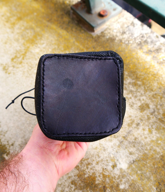 Bourse haute en cuir teinté et cousu à la main. Peux contenir facilement une cinquantaine de dés.