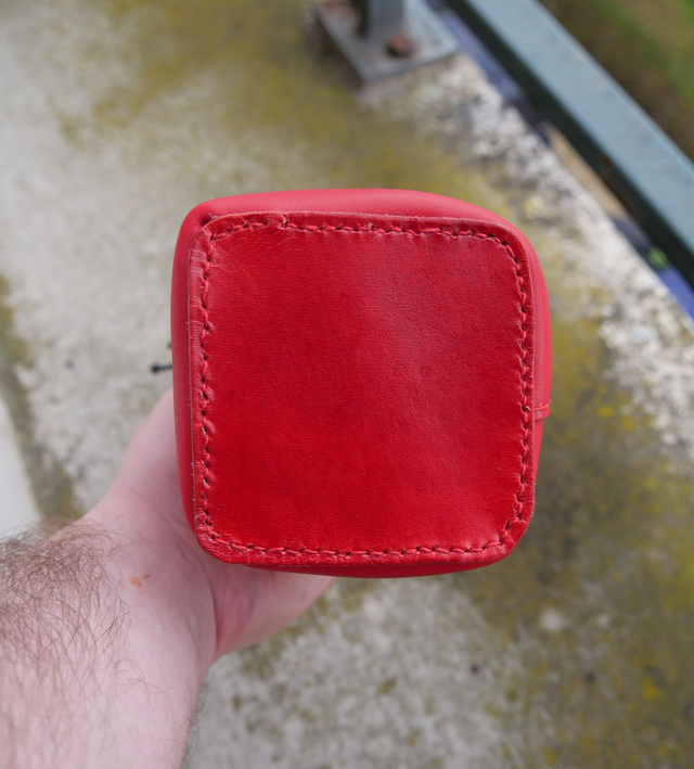 Bourse haute en cuir cousu à la main. Peux contenir facilement une cinquantaine de dés.