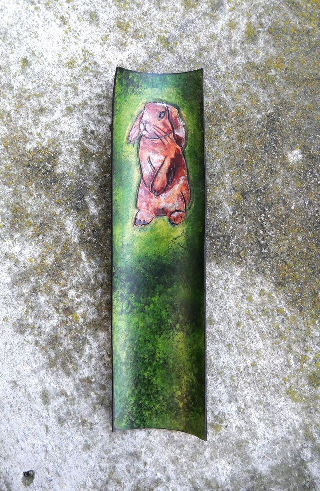 Marque page en cuir tannage végétal gravé et teinté à la main