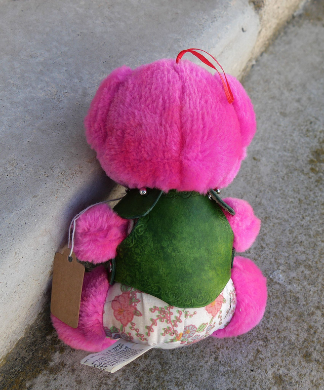 Peluche de seconde main avec une armure enlevable en cuir tannage végétal gravé, teinté et cousu à la main