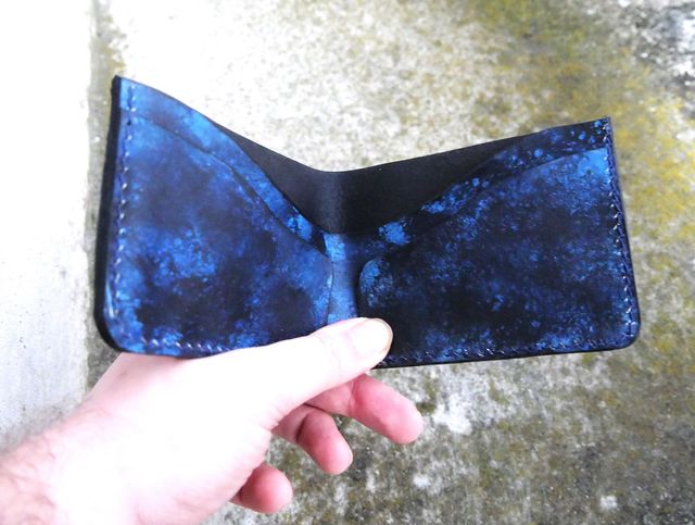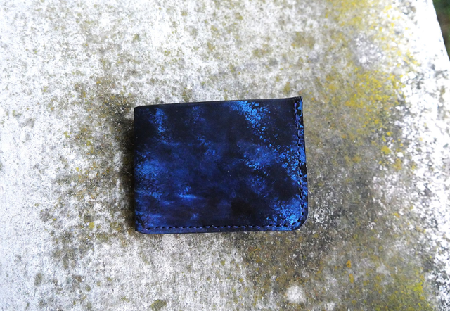 Porte carte teinté et cousu a la main en cuir tannage végétal