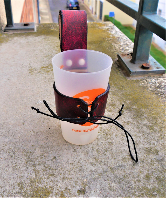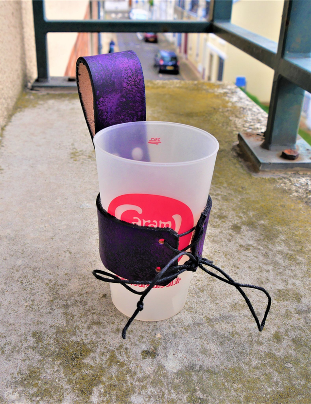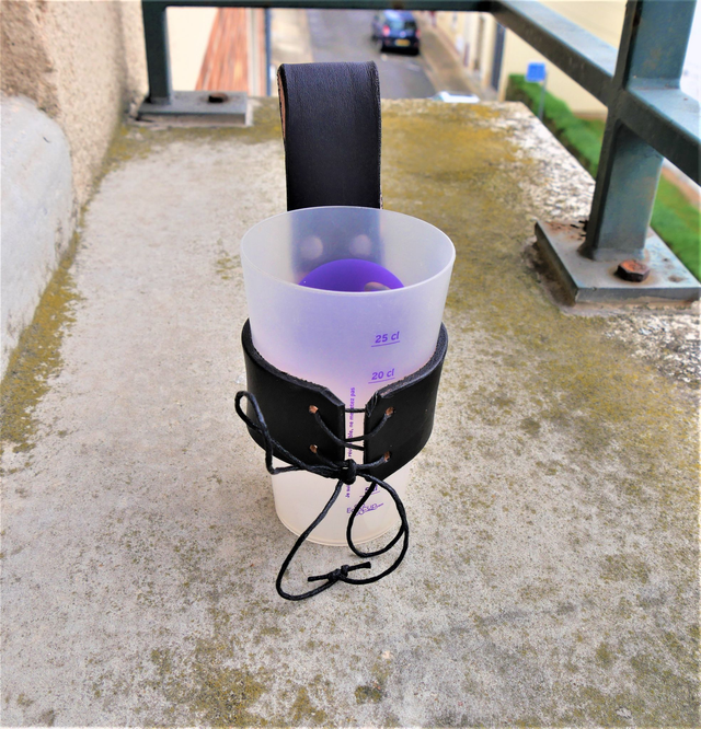 Porte verre / Porte corne teintés à la main réglable. Le verre présenté est un verre de 25ml