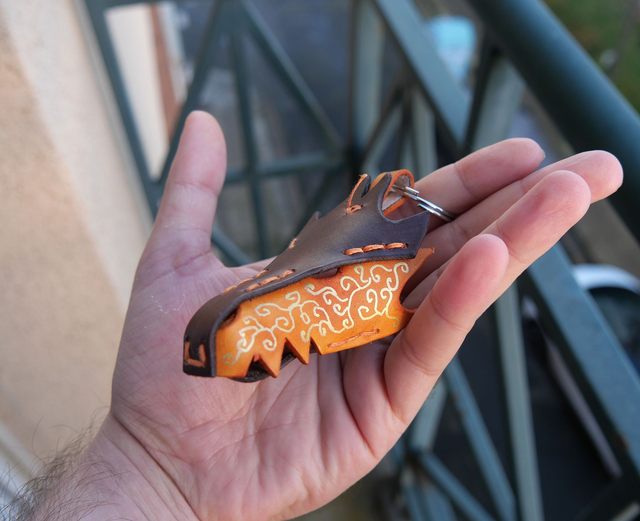 Porte clé en cuir tannage végétal teinté et cousu à la main
